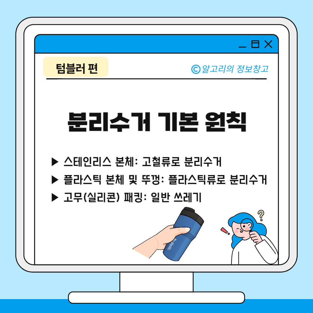 텀블러 분리수거, 헷갈리지 마세요! 텀블러 본체부터 뚜껑, 고무 패킹까지 재질별로 올바르게 버리는 방법을 알려드립니다. 잘못 버리면 과태료를 낼 수도 있습니다.
